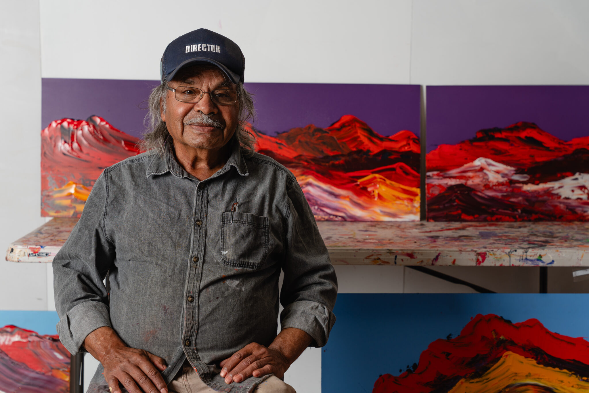 Join APY Artist and Director George Cooley as he discusses his practice and involvement in the APY Art Centre Collective. A respected senior man and community leader from Coober Pedy, Cooley is a painter and opal miner, and Chair of the Umoona Community Arts Centre that opened in 2024. He paints the landscape surrounding his Country, particularly the Breakaways, an important site 25km north of Coober Pedy, known for its spectacular hills, mesas and plains. Cooley has been nominated in the 2023 and 2024 National Aboriginal and Torres Strait Islander Art Awards at the Museum and Art Gallery of the Northern Territory, the 2024 Wynne Prize and featured in the 2024 Adelaide Biennial of Australian Art at the Art Gallery of South Australia.