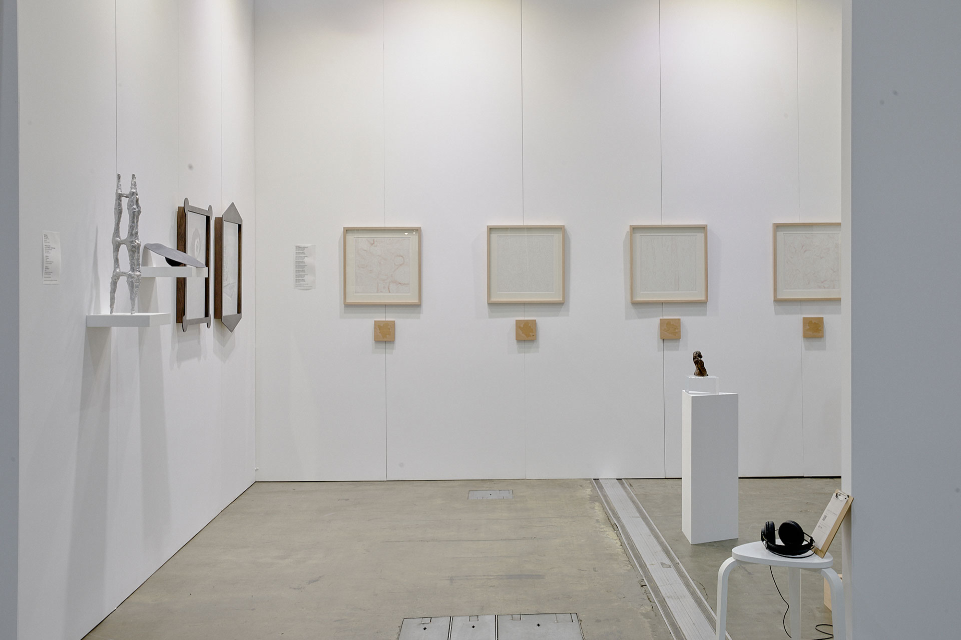 Her processes develop textures and patinas that recall repetitions of pedestrian life, evidence of adaptation, and acts of care and maintenance.